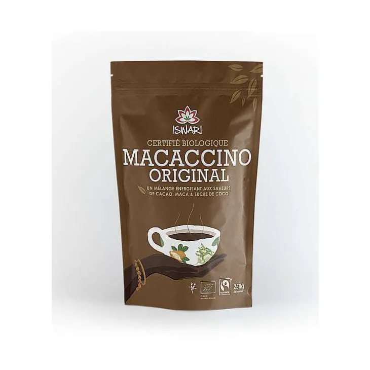 | Composition | Poudre de cacao biologique et issu du commerce équitable (35%), sucre de noix de coco biologique (35%), poudre de maca biologique (30%)