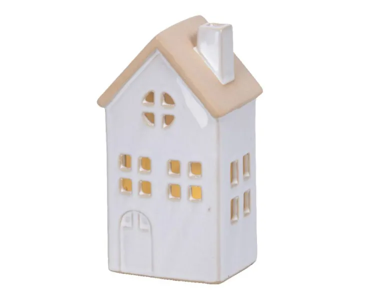 Porte bougie en céramique bicolore naturel/vert petit modèle – Ø 10 x H 17,5 cm
