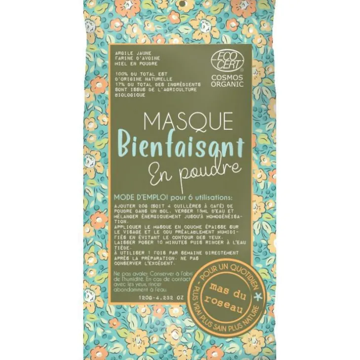 | Conseils d’entretien | Ne pas avaler. Conserver à l’abri de l’humidité. En cas de contact avec les yeux, rincer abondamment à l’eau.Utilisation: Ajouter 20 g (soit 4 cuillères à café) de poudre dans un bol, verser 15 ml d’eau et mélanger jusqu’à homogénéisation. Appliquer le masque en couche épaisse sur le visage et le cou préalablement humidifiés en évitant le contour des yeux. Laisser poser 10 minutes puis rincer à l’eau tiède. A utiliser 1 fois par semaine directement après la préparation.