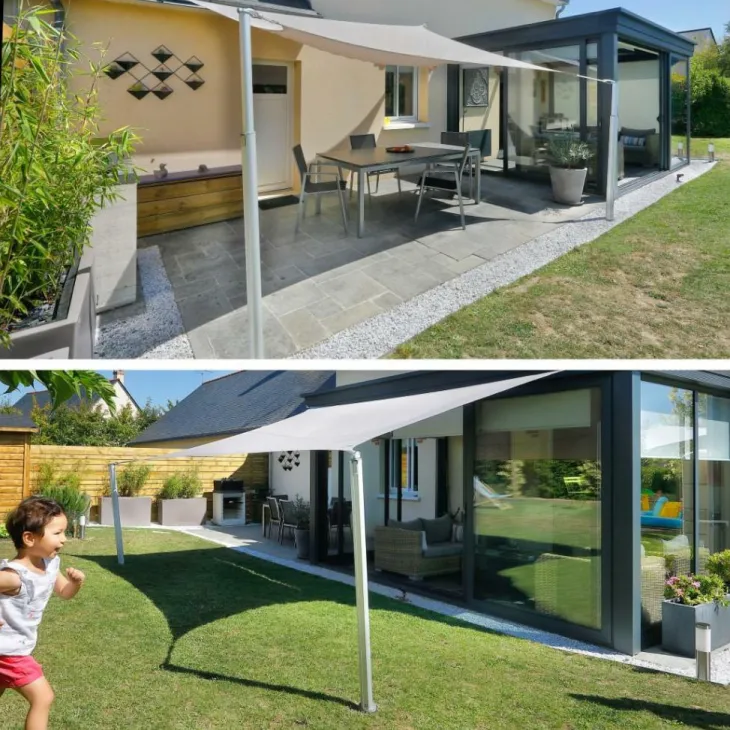 | Conseils d’entretien | LE CHOIX DE LA VOILE : Afin de faciliter le montage et la préservation des mâts, nous recommandons l’utilisation de voiles ajourées d’une surface de 12m² et d’une densité de 280g/m² maximum. Les voiles d’ombrage GARD & ROCK (ref 428-6XX-XX) seront les plus appropriés pour bénéficier d’un ombrage de qualité.Si vous souhaitez une dimension plus importante, dans ce cas il faut opter pour des filets de camouflage (sans prise au vent) d’une surface maximale de 20m2 (5x4m par exemple).CRÉEZ votre Tonnelle personalisée : Installez 3 à 4 mâts et fixez-y une voile d’ombrage triangulaire ou rectangulaire. Vous bénéficierez d’une installation design et amovible.Fixez des voiles d’ombrage en façade de votre maison ou de votre véranda puis installez des mâts amovibles Gard&Rock afin de créer un 3ème et/ou 4ème point d’accroche. Vous augmenterez ainsi votre surface ombragée, atout majeur pour mieux profiter de votre jardin l’été en vous apportant de la fraîcheur!Afin d’assurer une fixation optimale et notamment en cas de terrain meuble, nous recommandons de sceller la base d’ancrage dans du béton. Le mode opératoire est indiqué sur la notice et nous vous invitons à visualiser cette vidéo: https://bit.ly/40mV1MeDans la même gamme évolutive Gard&Rock : Base d’ancrage (428-001) / Pied pour parasol droit (428-002) / Kit Poteaux Multisports (428-003) / Borne solaire (428-005) / Pied pour parasol déporté (428-007) / Poteau pour Hamac (428-014)