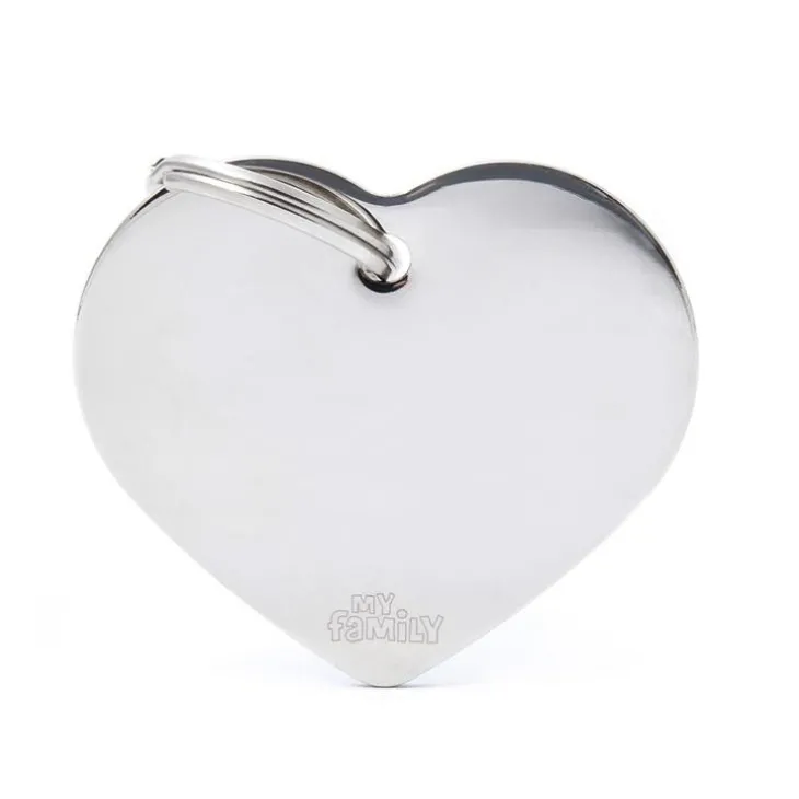 Médaille basic grand cœur pour chien en laiton argenté