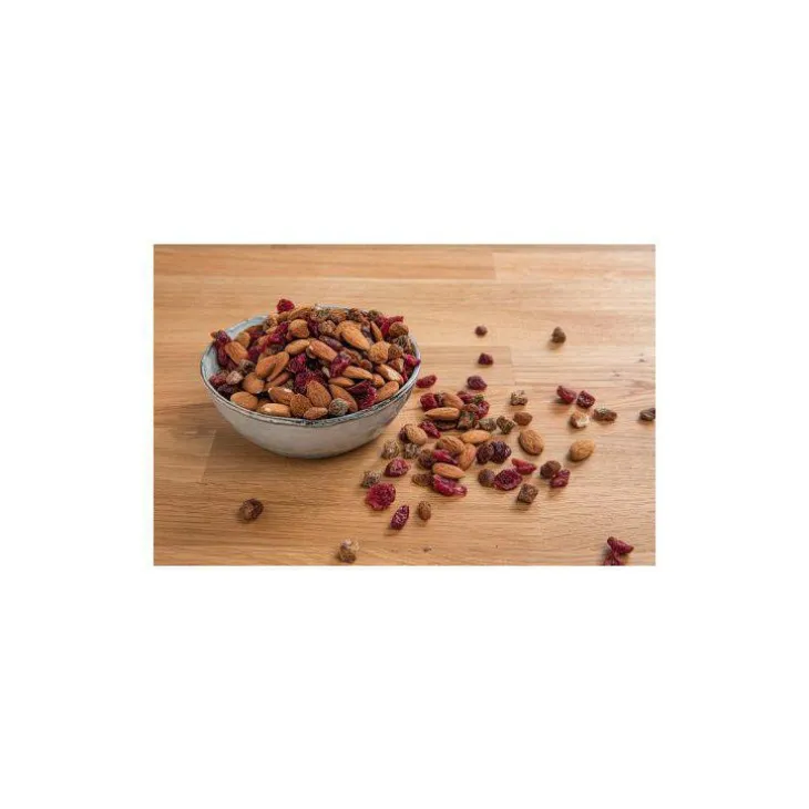 | Composition | Amandes* , cranberries* (cranberries*, sucre de canne*, huile de tournesol*), figues* (figues*, farine de riz*), raisins Sultanine* (raisins*, huile de tournesol*).
