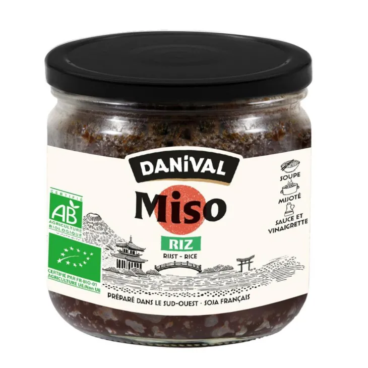 | Composition | SOJA* français, riz rond mi-complet* (41,5%), sel marin non raffiné de l’Atlantique, eau, enzyme (Aspergillus oryzae). Allergène : SOJA. * Ingrédients biologiques.