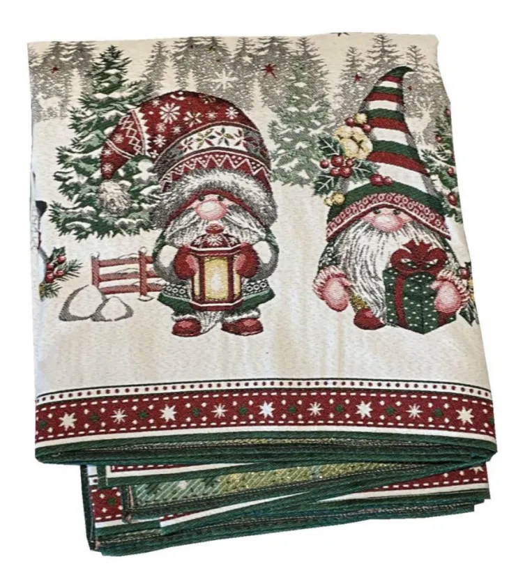 Nappe blanche en PE/coton à motifs verts et rouges Lutins - 140 x 300 cm