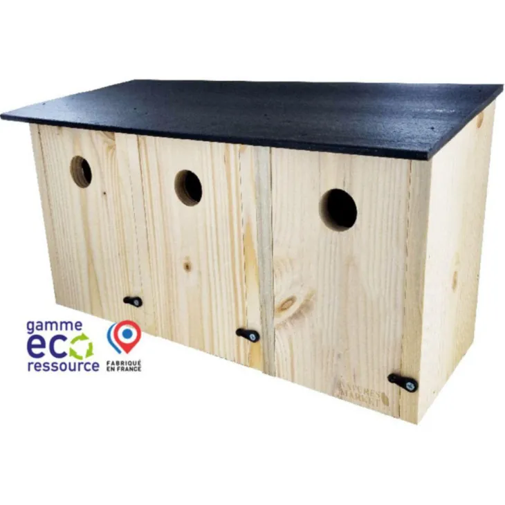 | Conseils d’entretien | Nettoyez et videz le nichoir en septembre après les nichées et février qu’il a servi pendant l’hiver et peut être souillé, afin qu’il soit propre pour les nouveaux arrivants. A sec, ou à l’eau et au savon.