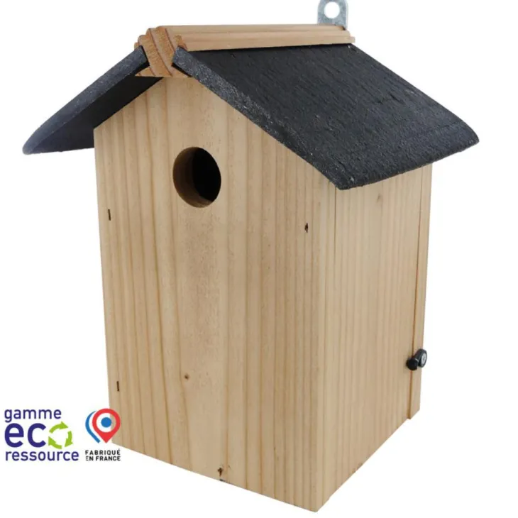 | Conseils d’entretien | Nettoyez et videz le nichoir en septembre après les nichées et février qu’il a servi pendant l’hiver et peut être souillé, afin qu’il soit propre pour les nouveaux arrivants. A sec, ou à l’eau et au savon.