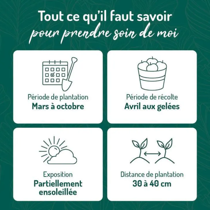 | Période de plantation | MAI SEPTEMBRE JUILLET JUIN AVRIL AOÛT OCTOBRE MARS