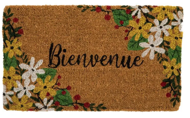 Tapis grattoir en caoutchouc feuillage coloris beige pour extérieur E/C Sweetsol – 45 x 75 cm