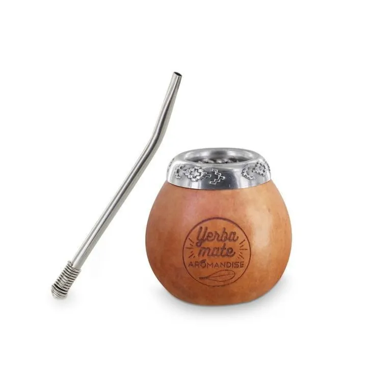 | Composition | calebasse Lagenaria, Siceraria naturelle. Bombilla en acier inoxydable.