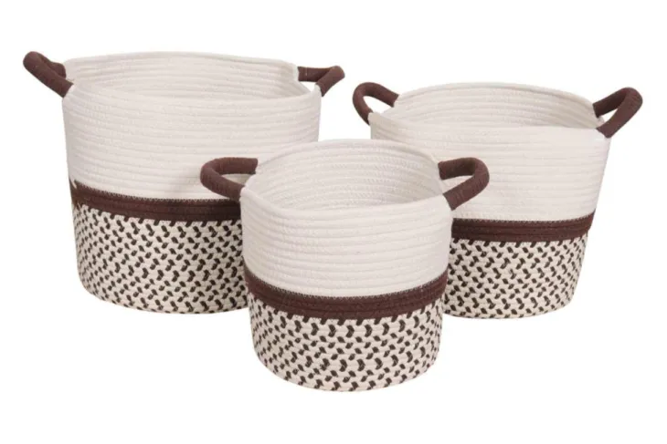Cache-pot vannerie naturelle avec rebord blanc coloris beige – 24 x 22,5 x 18 cm