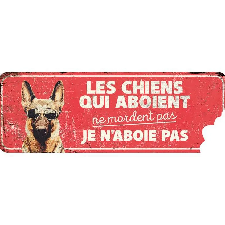Panneau d’avertissement berger allemand coloris rouge en métal galvanisé D&D Home – 40 x 13 x 0,3 cm