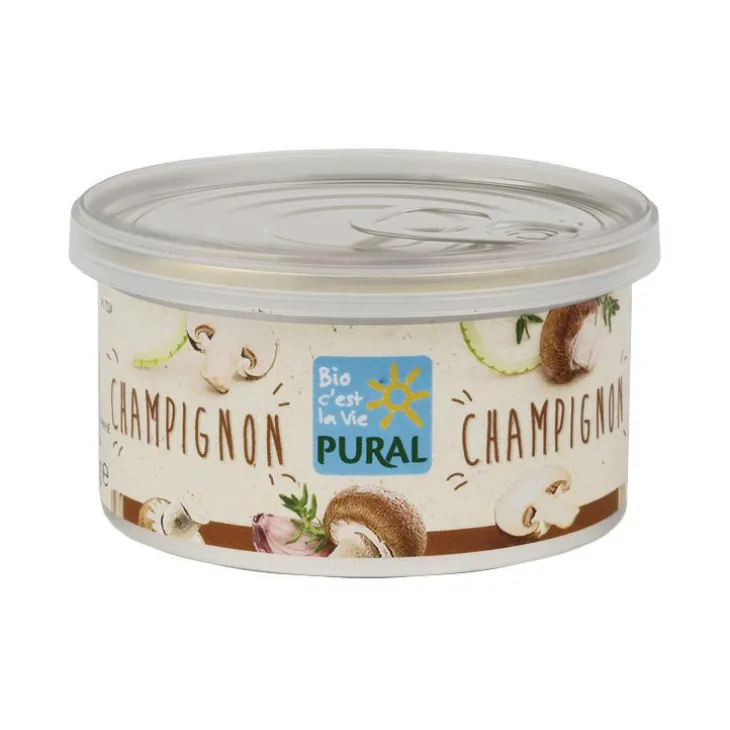 | Composition | Eau, champignons de Paris* (18%), huile de tournesol*, pommes de terre en poudre*, tofu* (SOJA*, eau, chlorure de magnésium (agent de coagulation)), levure alimentaire*, fécule de pomme de terre*, oignons*, oignons séchés*, sel marin, jus de citron*, paprika*, thym*, clou de girofle*, muscade*, ail en poudre*, poivre de Cayenne*.