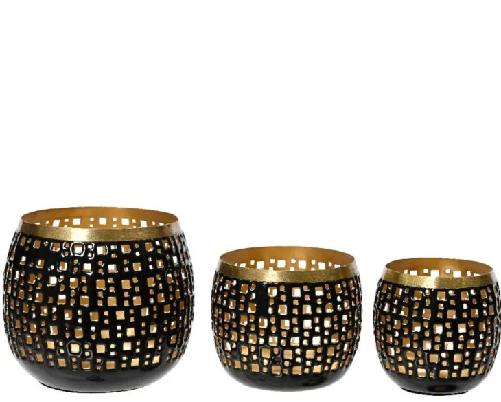 Porte-bougie forme feuille en métal vert et or – Ø 13 x 4 cm