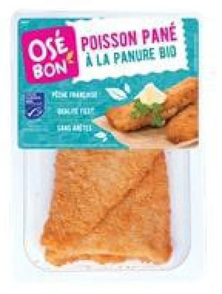 | Composition | Filet de lieu noir 63 % (poisson), chapelure* (farine de blé*, levure*, sel), huile de tournesol*, eau, farine de blé*, blanc d’oeuf*, amidons de pomme de terre* et de manioc*, huiles essentielles de citron*, sel. * Ingrédient issu de l’agriculture biologique