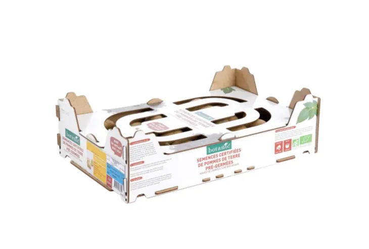 | Conseils d’entretien | PREPARER LE SOL : Automne, hiver, bêcher à grosses mottes et enrichir le sol. PLANTER : Attendre que le sol soit suffisamment réchauffé (>10°C) et respecter les distances de plantation (profondeur = 5 cm, entre tubercules de 35 à 40 cm et entre rang de 65 à 70 cm). Faire un léger buttage. BUTTER : Au début de la végétation, faire un bon buttage en cône en recouvrant toutes les jeunes pousses. DEFANER : 3 semaines avant la récolte, faucher la végétation pour améliorer la maturation, les qualités culinaires et éviter les dernières attaques de mildiou. RECOLTER : Eviter d’arracher trop tôt. Stocker les tubercules en les étalant dans un lieu aéré, sombre, sans humidité et hors gel.