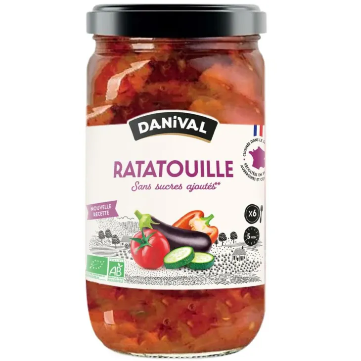 | Composition | Poivrons, aubergines, courgettes, poivre, basilic, crème de riz, sel marin non raffiné de l’Atlantique, huile d’olive vierge extra extraite à froid, huile de tournesol désodorisée, ail, concentré de tomate 28%, oignons, tomates cubetées (pulpe de tomate et concentré)