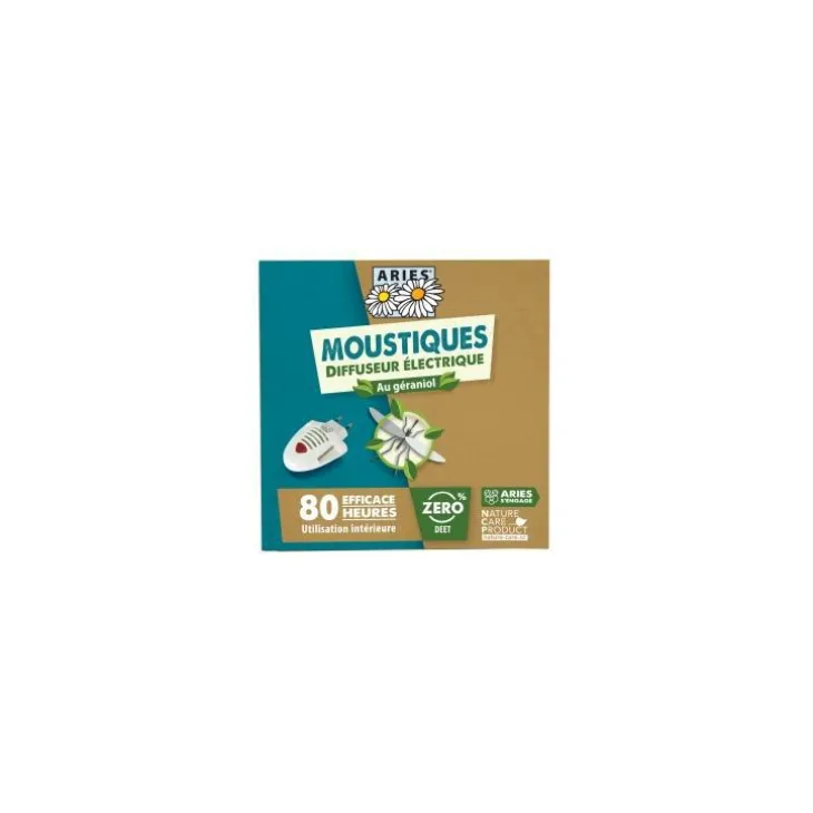 | Équipement(s) de protection | Verser 1ml de produit sur plaquette.Installer plaquette dans le diffuseur élect. ARIES,brancher sur prise.Laisser diffuser 2 h & débrancher.Pour remplacer plaquette usagée:glisser la nouvelle sous la grille de protection à la place de l’ancienne.