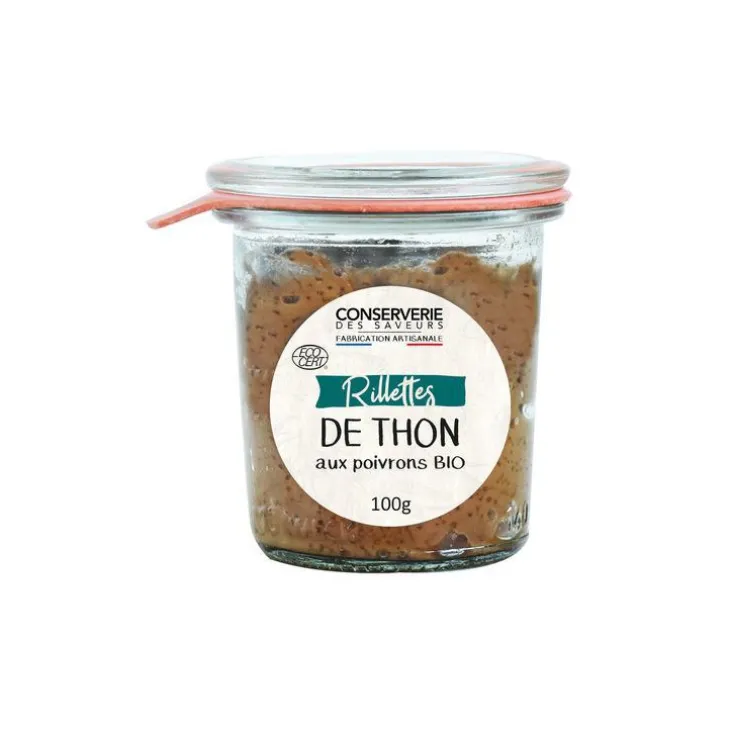 | Composition | THON 45 % (Origine : Océan Indien Ouest), CREME liquide* (dont stabilisant : carraghénane), poivron rouge* 20 % (Origine : UE), oignon*, sel de Guérande IGP 1 %, amidon de maïs*, poivre*. *55 % d’ingrédients agricoles biologiques.