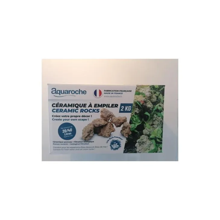 | Conseils d’entretien | Pour ceux qui veulent composer eux-mêmes leur décor, en eau douce ou en récifal, ces roches laissent libre cours à la créativité.La céramique à empiler est un produit déjà largement connu et utilisé en décor d’aquarium. pour cette gamme, les roches ont été adaptées et sont plus petites.Chaque carton contient un assortiment de 5 à 7 roches de 8 à 15 cm, variées en formes et dimensions, pour décorer un aquarium de 20 à 40 litres.Placer 3 roches au sol, un peu écartées en triangle, les relier par 1 ou 2 plus grosses pour former un pont ou une grotte, compléter avec une petite roche sur le dessus et une au sol en avant plan