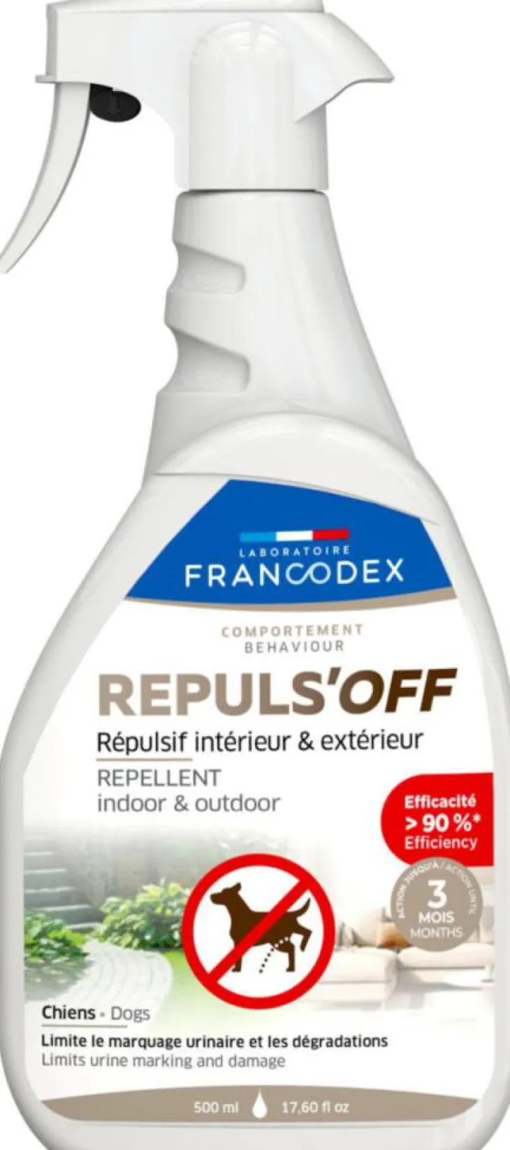 | Composition | Acide acétique (CAS n°64-19-7) 8.5 g/L (0.832% m/m), huile de menthe (CAS n°8006-90-4) 8.5 g/L (0.832% m/m), huile de lavande (CAS n°8000-28-0) 8.5 g/L (0.832% m/m). Contient unamérisant