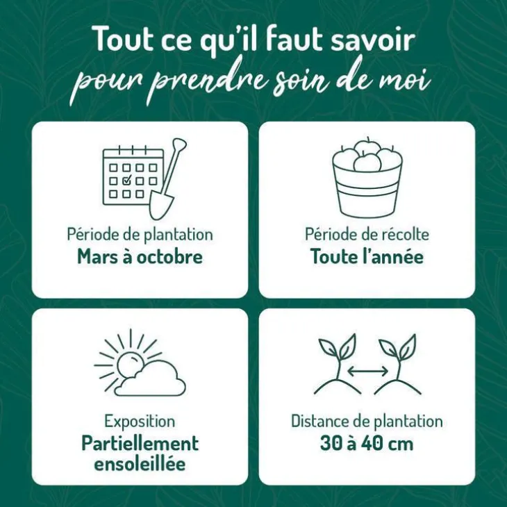 | Période de plantation | MAI SEPTEMBRE MARS AOÛT JUIN OCTOBRE JUILLET AVRIL