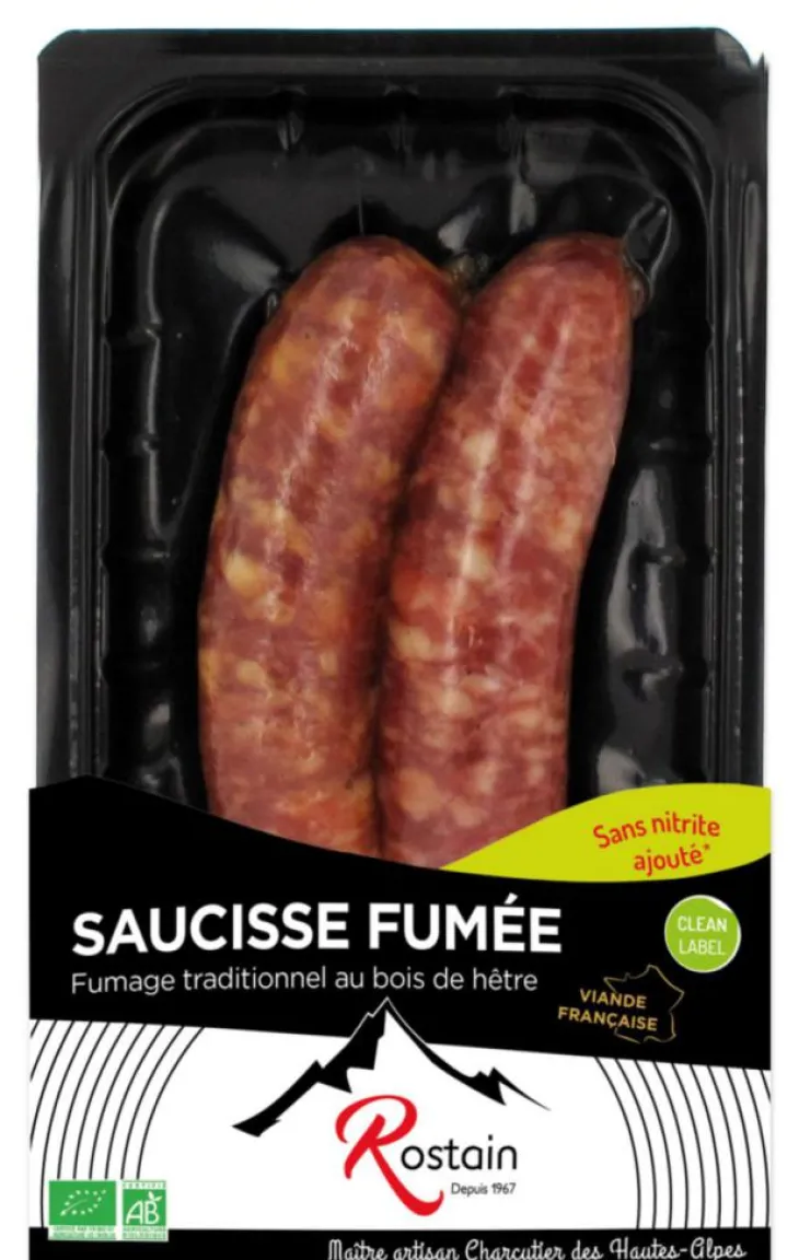 | Composition | *Viande de porc (96% – origine France), sel de mer, *dextrose de maïs, *poivre, *extrait de fruit, *muscade, *ail, ferment. Fumet : bois de hêtre non traité. Boyau naturel de porc. * ingrédients issus de l’agriculture biologique