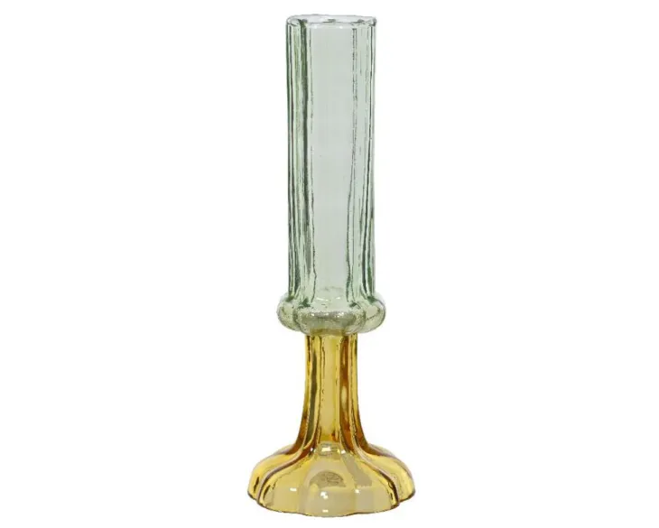 Porte-bougie forme feuille en métal vert et or – Ø 13 x 4 cm
