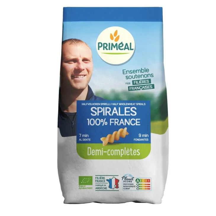 | Conseils d’entretien | Jeter les spirales dans un grand volume d’eau bouillante salée, cuire 7 mn pour une cuisson « al dente » et 9 mn pour une cuisson fondante. Egoutter et déguster ces pâtes chaudes simplement avec un filet d’huile d’olive ou accompagnées d’une sauce de votre choix.