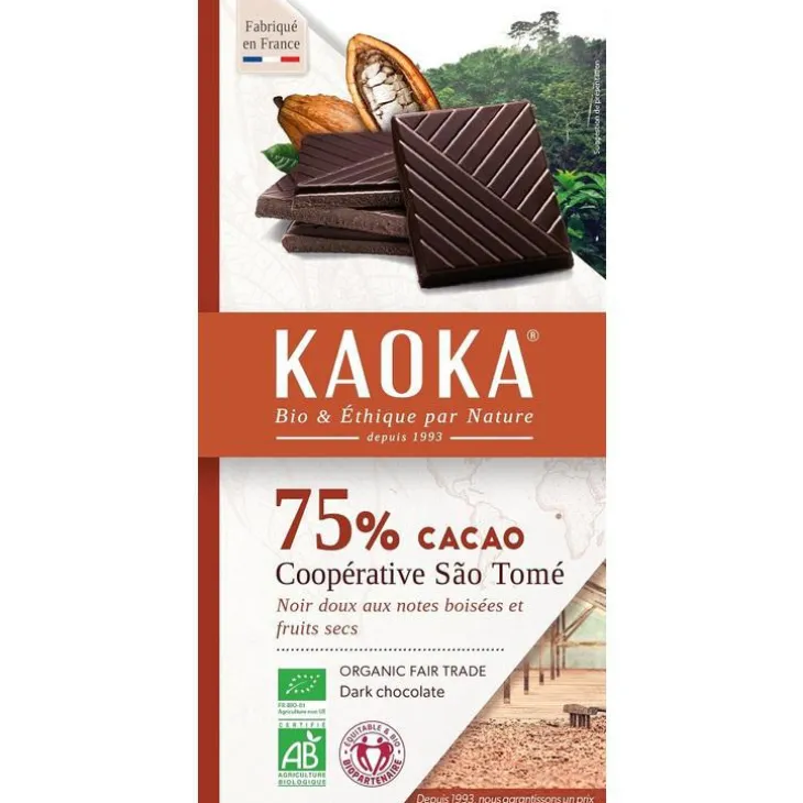 | Composition | pâte de cacao Sao Tomé & Principe* 68% issu du commerce équitable, sucre de canne blond* 23.45%, beurre de cacao* 8% issu du commerce équitable, émulsifiant : lécithine de tournesol 0.5%, extrait de vanille* 0.05% issu du commerce équitable. * ingrédient agricole issu de l’agriculture biologique. Peut contenir des traces de fruits à coques, de gluten et de lait.