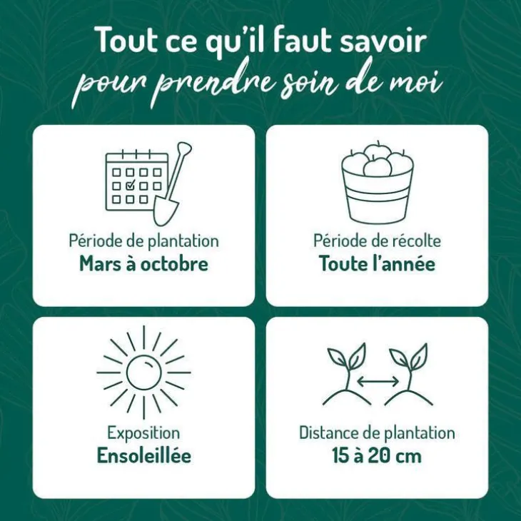 | Période de plantation | AVRIL OCTOBRE JUILLET AOÛT MARS JUIN SEPTEMBRE MAI
