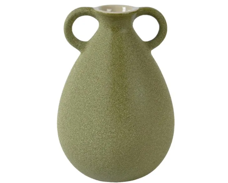 Porte bougie en céramique bicolore naturel/vert petit modèle – Ø 10 x H 17,5 cm