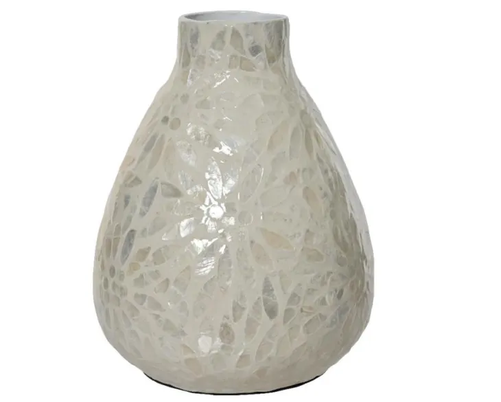 Porte bougie en céramique bicolore naturel/vert petit modèle – Ø 10 x H 17,5 cm