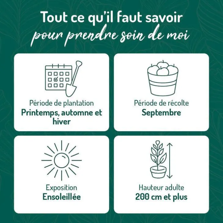 | Période de plantation | AVRIL JANVIER FÉVRIER NOVEMBRE MAI OCTOBRE MARS JUIN DÉCEMBRE