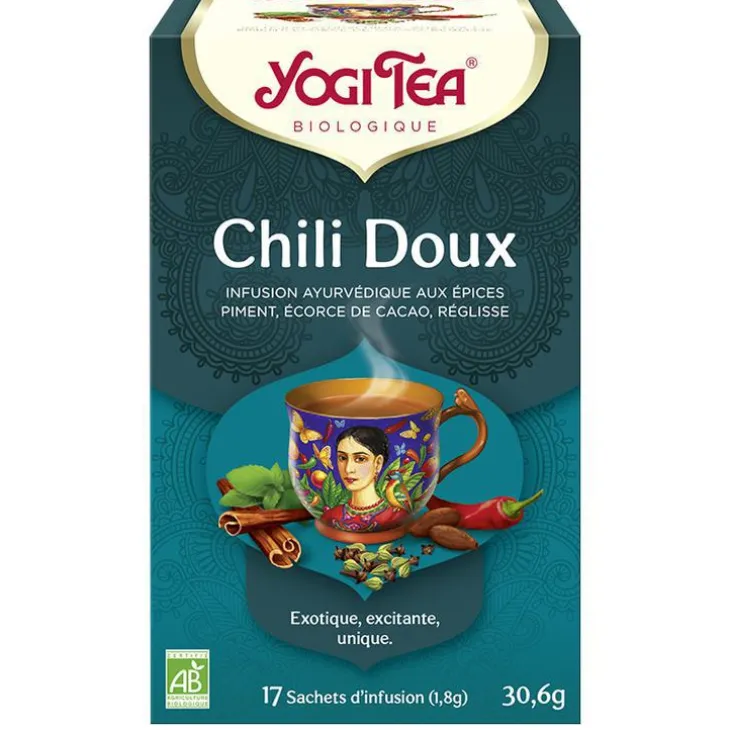 | Conseils d’entretien | Le Yogi Tea® Sweet Chili marie la richesse de l’Orient à la culture et aux traditions du Mexique. La recette de base de ce mélange s’inspire de la boisson traditionnelle mexicaine à base de chocolat, d’épices et de piment. Ce mélange surprenant et ludique ravira votre palais et le soleil mexicain vous procurera une agréable sensation de bien être.